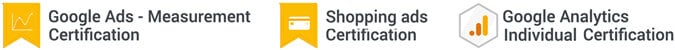 Brand Hause maintains current certifications from Google in Ads Search, Video Advertising, Display Advertising, Shopping Campaigns, Measurement, and Analytics. We are also Shopify Partner certified in Business Fundamentals and Product Fundamentals and a Squarespace Circle Member with specializations in website design and CSS customizations on the Squarespace platform.